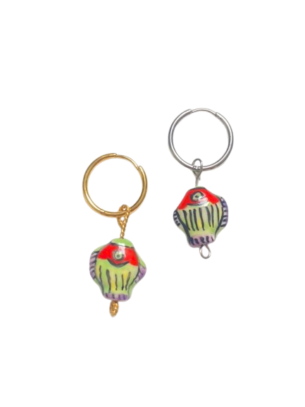 Geef je sieradencollectie een vrolijke twist met deze kleurrijke keramieken vis bedel. De bedel is zorgvuldig met de hand gemaakt en afgewerkt in levendige kleuren, waardoor elk exemplaar nét even anders is. Perfect om je oorbel of ketting een speels en creatief accent te geven.